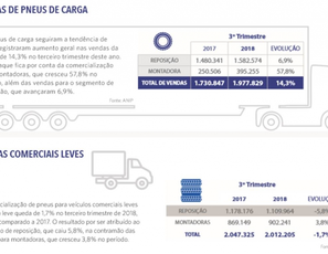 Com crescimento de 57,8% nas vendas para montadoras de caminhões e ônibus, levantamento do setor confirma tendência de aumento na comercialização de pneus para fabricantes e queda no segmento de reposição.
