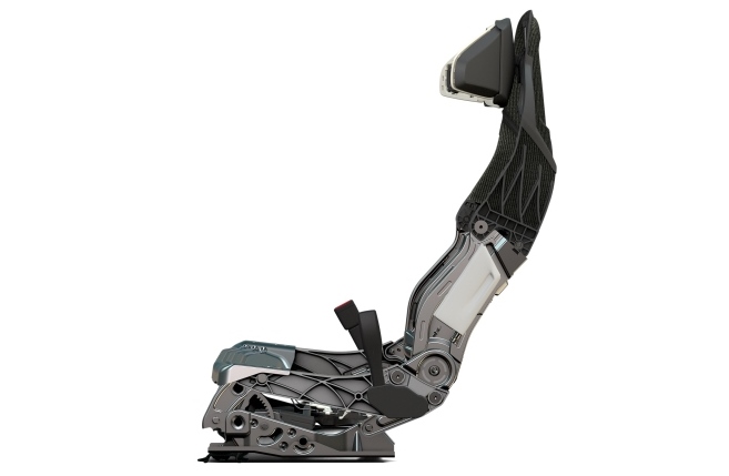 O banco permite colocar o condutor em três posições diferentes: uma para condução, uma para descanso e uma de “trabalho”, na qual o assento fica levemente virado para o centro da cabine, podendo ser inclinado até 25° para trás e girado até 10° no sentido do centro do espaço interno do carro. O assento foi totalmente remodelado, com subdivisão do encosto em duas áreas diferentes. Os pontos de fixação do cinto de segurança estão integrados no banco, com estrutura projetada para a mudança em caso de colisão. Entre uma posição e outra, o ponto de fixação variável do cinto localizado próximo ao ombro pode se adaptar automaticamente à anatomia do motorista deitado. Além disso, o pré-tensionador ativo do cinto de segurança, ACR 8, pode enviar sinais ao condutor – por meio de vibrações – para que ele, por exemplo, volte a se concentrar no trânsito. Dessa forma, o sistema do cinto de segurança pode ser inclusive integrado à interface homem-máquina do carro, o que é imprescindível para os programas de assistência ao motorista e para as funções de condução automatizadas, nas quais o condutor é informado para retomar o comando do veículo.