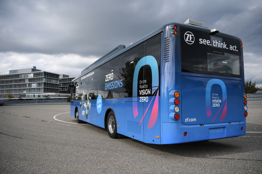Ar limpo, nenhum barulho: O novo veículo de teste da ZF, com a unidade de transmissão central elétrica, é uma solução de eletromobilidade para ônibus urbanos.