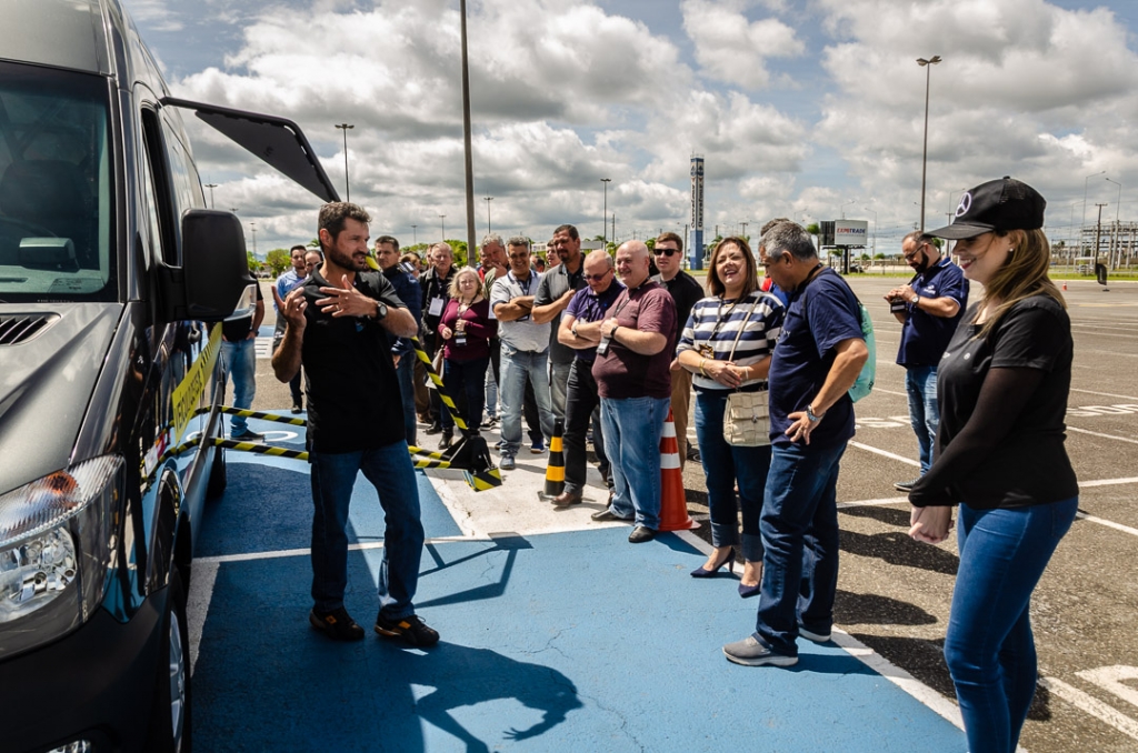 A Mercedes-Benz e o seu concessionário Van Center Rodobens reuniram cerca de 180 clientes da região metropolitana de Curitiba, no Paraná, de vários segmentos de transporte, para uma apresentação dinâmica da atuação do ESP Adaptativo 9i, exclusividade da Sprinter no País. Para tanto, no sábado, 27 de outubro, foi montado um percurso especial no espaço de eventos Expotrade. A condução do veículo, especialmente preparado para esta ação de demonstração, ficou a cargo de engenheiros da fábrica, que também apresentaram as características desse programa de controle de estabilidade, seus benefícios e vantagens no dia a dia do transporte de passageiros e de carga.