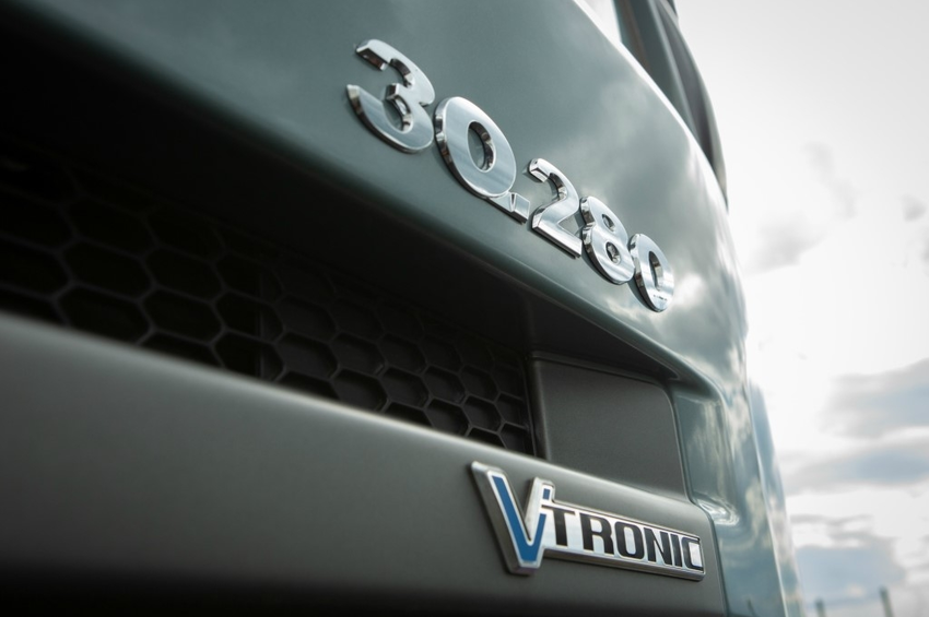 Equipado com segundo eixo direcional com suspensor pneumático, está disponível com transmissão mecânica ZF de nove velocidades e conta também com a automatizada V-Tronic como opcional.