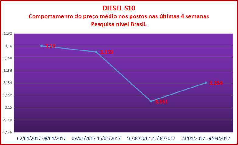 O diesel seguiu a mesma tendência. O preço caiu de R$ 3,015 para R$ 3,012. Nas últimas 14 semanas, o valor do diesel caiu em 13 e ficou estável em uma delas, segundo o levantamento da ANP.