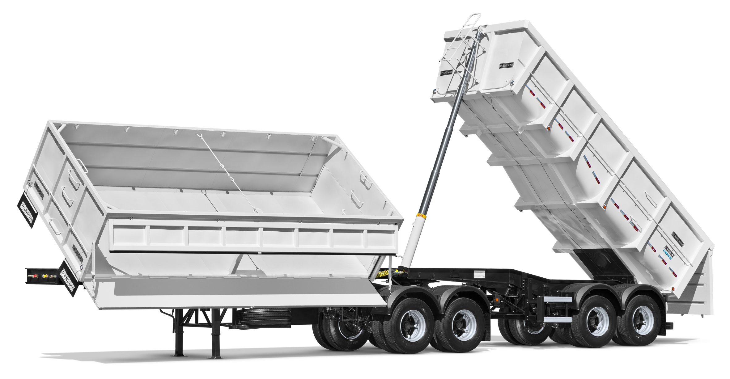 Bitrem Basculante Randon, em aço de alta resistência, Modelo 20 + 20 m³. O uso de materiais de alta tecnologia aliado às modernas ferramentas de projeto permitiram uma redução de 13% de tara e um aumento de 4,6% na carga líquida resultando em maior produtividade. Com isso, o cliente Randon ganha uma viagem a cada 22 na comparação com os modelos convencionais.
