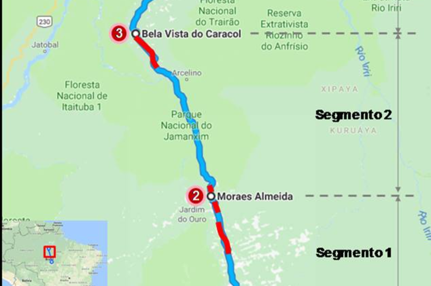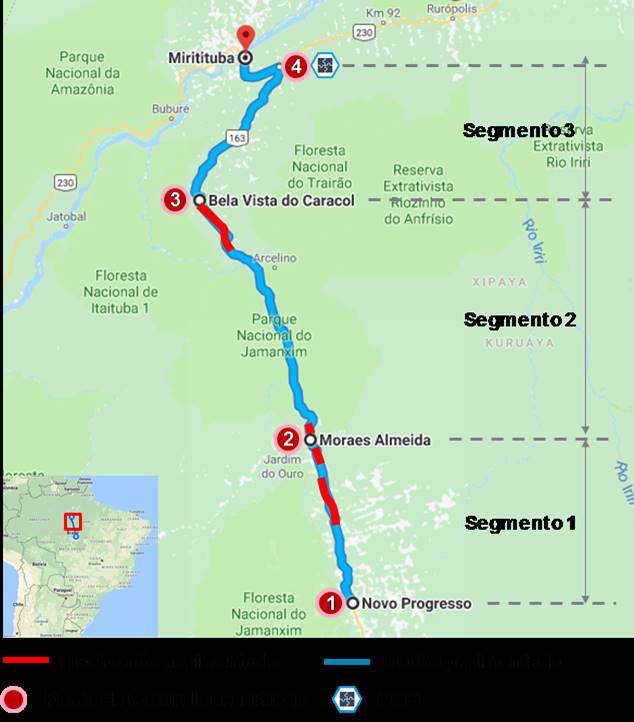 A maior parte da BR-163 está pavimentada desde Mato Grosso até o Pará, restando poucos trechos em obras. Dos 710 quilômetros da BR-163/PA localizados entre a divisa com Mato Grosso até a entrada para o Porto de Miritituba/PA, 620 quilômetros já foram pavimentados pelo DNIT, representando um investimento de R$ 1,37 bilhão do Governo Federal. Os cerca de 90 quilômetros a serem asfaltados estão divididos em dois lotes de obras, que estão em andamento. No período de chuvas intensas, devido à impossibilidade de executar o asfaltamento da pista, as obras concentram-se em serviços de manutenção, para garantir a trafegabilidade na rodovia. São realizadas ações de recomposição do revestimento primário da pista e obras de drenagem, além de colocação de rocha.