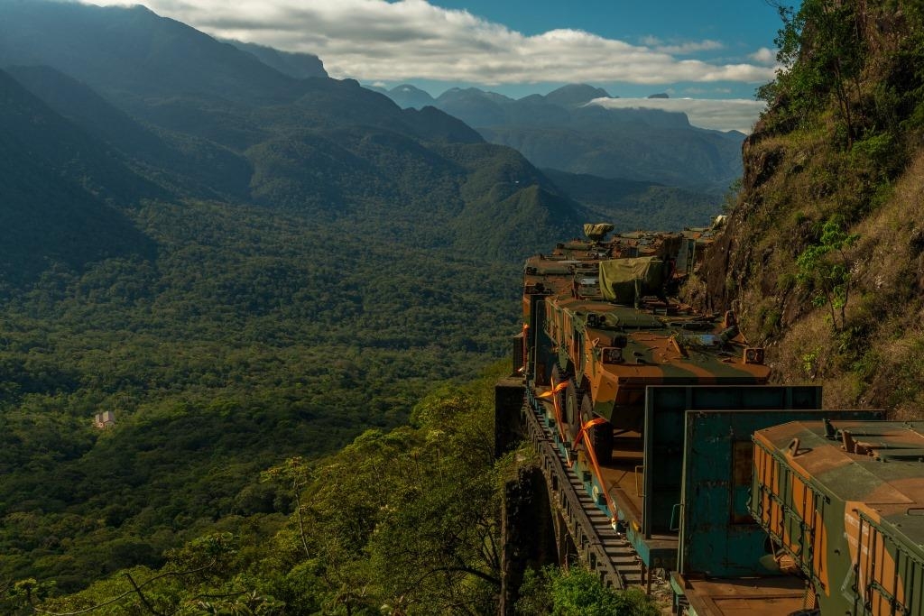 A Rumo, maior operadora de ferrovias do país, transportou 31 blindados do exército brasileiro na Operação Atlântico V. Neste domingo (12), as frotas desceram pela Serra do Mar em duas composições de trens na última etapa do trajeto.
