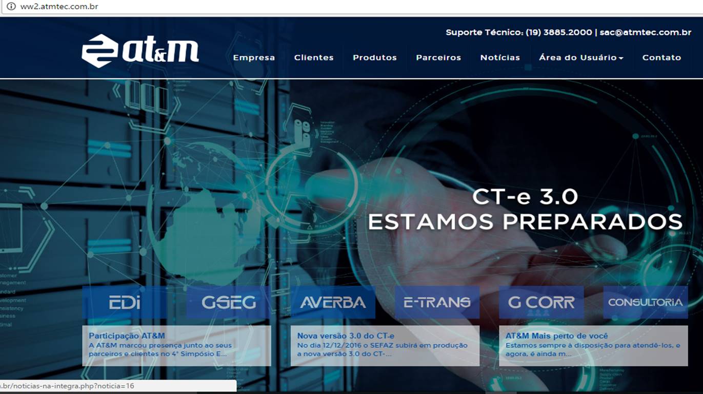 SETORES DE ATUAÇÃO - Além disso, a AT&M desenvolve sistemas de TI para os segmentos da indústria, comércio e serviços, e quaisquer outros segmentos de empresas que buscam a tecnologia EDI. Atualmente, são mais de 18 mil empresas que utilização soluções AT&M. Os diferenciais da AT&M são a constante evolução para atender o mercado e normas técnicas e normas da própria SUSEP para evitar sonegação na declaração de transporte de carga. Atende os segmentos de seguros, averbação eletrônica, corretores de seguros e companhias de seguros. Hoje, atende 21 companhias de seguros e mais de 780 corretores. Disponibiliza 8 soluções padrões para atender todo o mercado brasileiro e seus diferentes setores, desde a digitação de dados até a integração de redes de computadores.