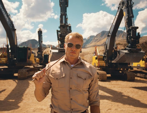 Ator Dolph Lundgren interage com máquinas em performance da Volvo CE.