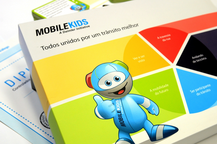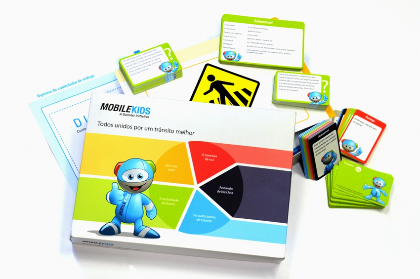 A cartilha Mobile Kids, projeto original do Grupo Daimler, é composta por cartões, fichas, desenhos explicativos e jogos de cartas, que representam a realidade do trânsito e estimulam as crianças a aprender comportamentos seguros, incentivando-as a também compartilhar os conhecimentos com seus familiares.