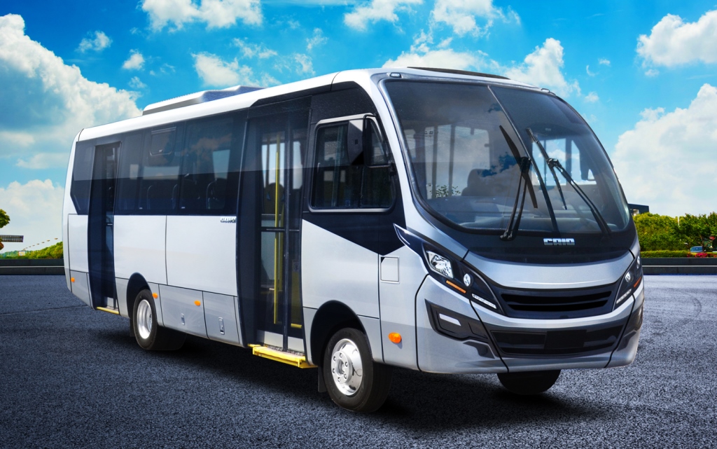 O Apache Vip, líder de vendas da marca Caio, está em sua quarta geração, sendo consagrado como a melhor estrutura do mercado. O modelo exposto é equipado com ar condicionado e janelas coladas com vidros na cor fumê, que proporcionam conforto térmico. Possui três portas tipo fole, itinerários e iluminação interna em led, além de elevador e poltronas estofadas para os usuários.