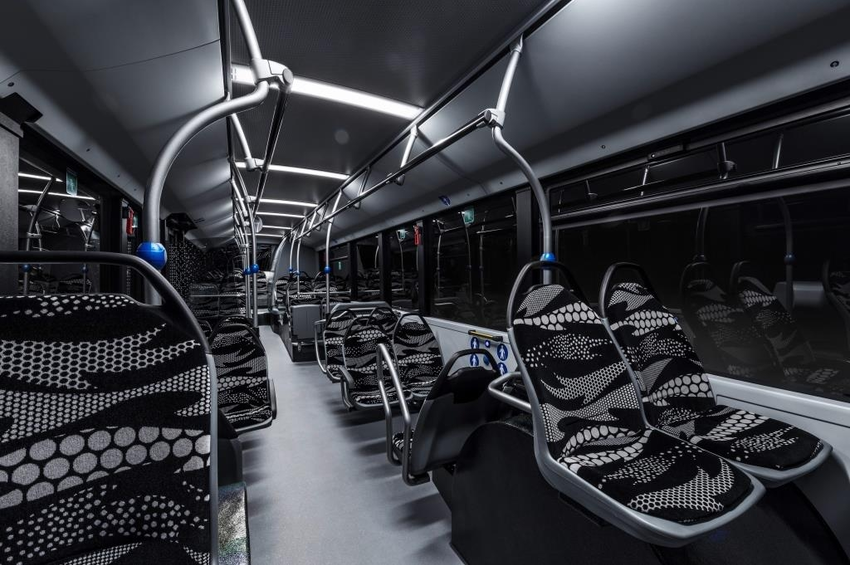 Além do grande número de equipamentos, a cor vermelha do interior do eCitaro também é bastante atraente com texturas de feltro que vão desde o estofamento dos bancos até as barras de apoio dos painéis das paredes laterais. Outra característica marcante é o fato de que todos os bancos na fileira dianteira estão em plataformas elevadas e com cintos de segurança de dois pontos.