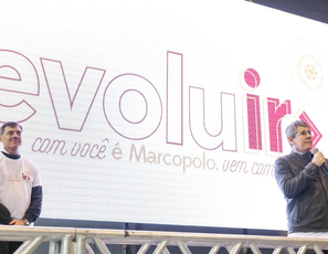 Evento em São José, na grande Florianópolis, é utilizado para mostrar os novos modelos de ônibus da marca.