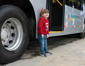 O garoto Bernardo realiza seu sonho e visita garagem da SBCTrans.
