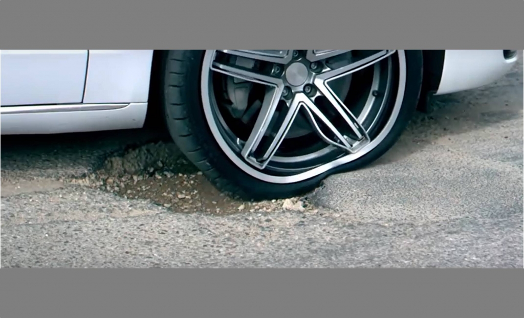 Em testes com o pneu 285/30R21 passando por cima de um buraco*, a versão com aro padrão furou o pneu a 28 km/h enquanto que a Flexible Wheel com a tecnologia MICHELIN ACORUS não teve pneus furados ou danos em nenhuma velocidade.