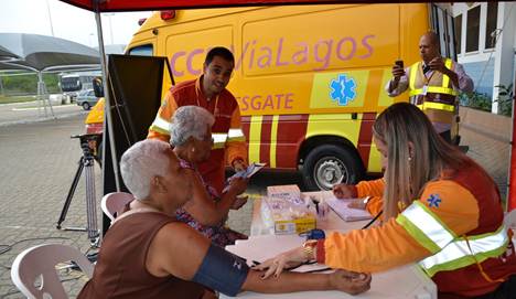 · Diariamente, até 25/09 (segunda-feira) 9h às 17h - Verificação dos níveis de glicose e da pressão arterial com a equipe do serviço SOS Usuário Médico da CCR ViaLagos, no shopping Graal, próximo à praça de pedágio;